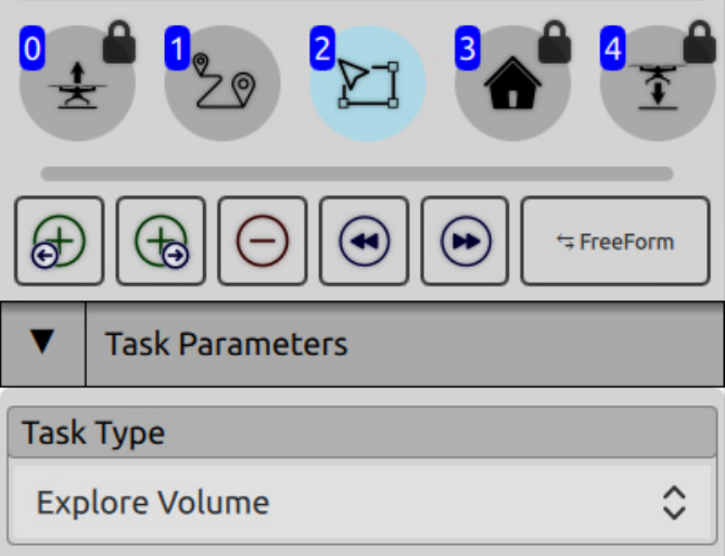 As in Task Panel Basic, the Mission Editor allows users to define high-level mission objectives prior to takeoff. In TPv3, this workflow is expanded to support an unlimited number of objectives and the ability to chain multiple waypoints and exploration volumes into a single mission sequence. This enables more complex, continuous flight plans to be constructed before launch.